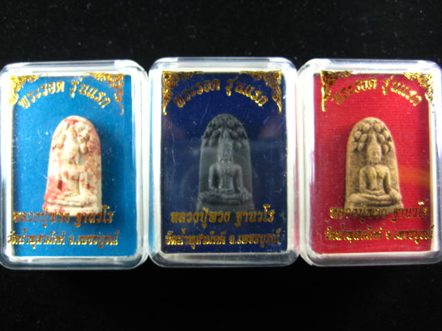 "วัดใจ" 3 องค์ 3 เนื้อ พระรอด รุ่นแรก หลวงปู่พวง วัดน้ำพุสามัคคี จ.เพชรบูรณ์ สภาพสวยกล่องเดิมทุกองค์ครับ |
