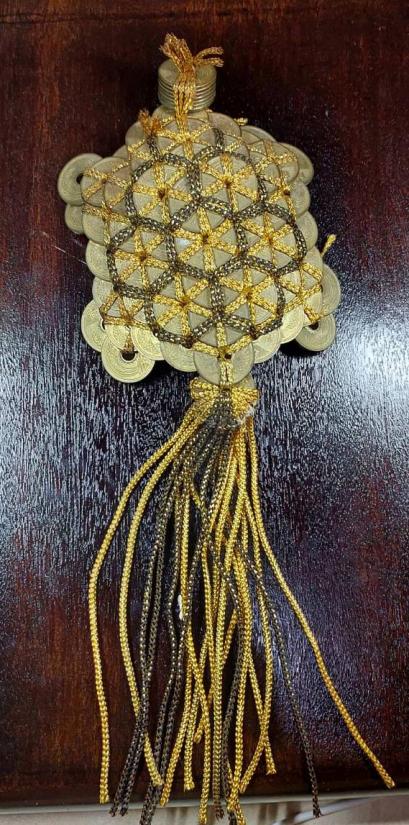 เหรียญ 5 เยน ของเก่า ทำเป็นเครื่องรางนำโชค รูปเต่า ขนาด 4.5 x 5.5 นิ้ว |