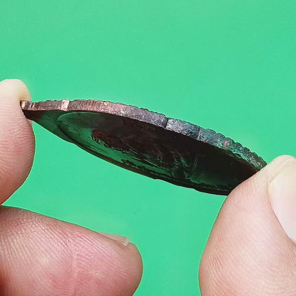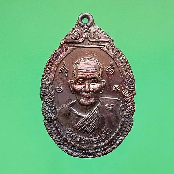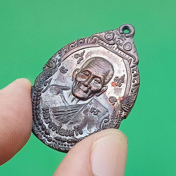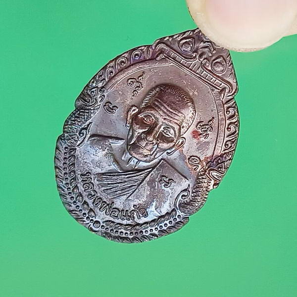 เหรียญรุ่นแรก หลวงพ่อแก้ว วัดสะพานไม้แก่น อ.จะนะ จ.สงขลา ปี 2536 เนื้อทองแดง ผิวหิ้งรุ้ง บล็อกธรรมดา มีสนิมเขียวขึ้นบ้างตามอายุเหรียญ ตามภาพ