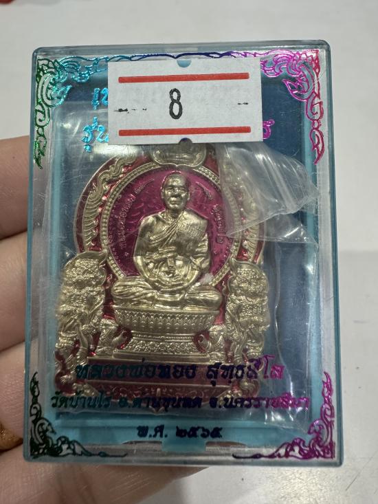 (เลขสวย 8)หลวงพ่อทอง วัดบ้านไร่ เหรียญนั่งพานทองชนะมาร ปี2565 เนื้ออัลปาก้า ลงยา no.8 มีกล่อง
