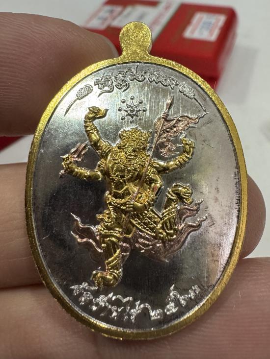(เลขสวย 8)หลวงพ่อทอง วัดบ้านไร่ เหรียญมนต์พระกาฬสยบไพรี ปี2563 เนื้อสามกษัตริย์ 3k no.8 มีกล่อง