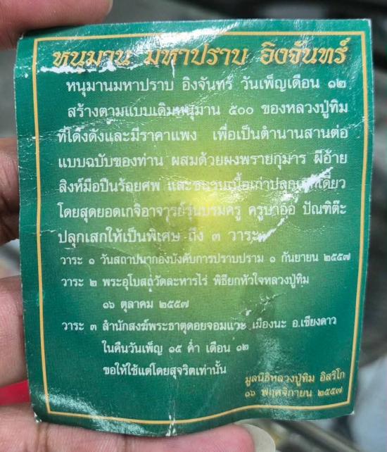 หนุมานมหาปราบปี57เนื้อผงพรายกุมาร มูลนิธิหลวงปู่ทิมจัดสร้างหายากสร้างน้อยครับ