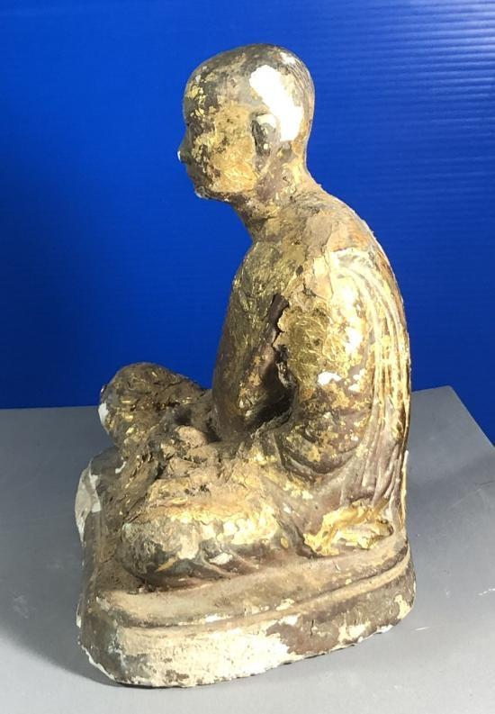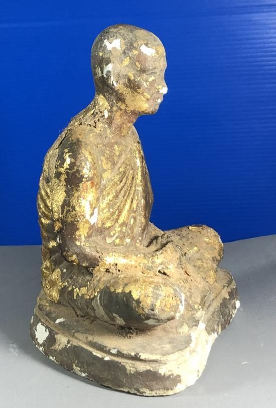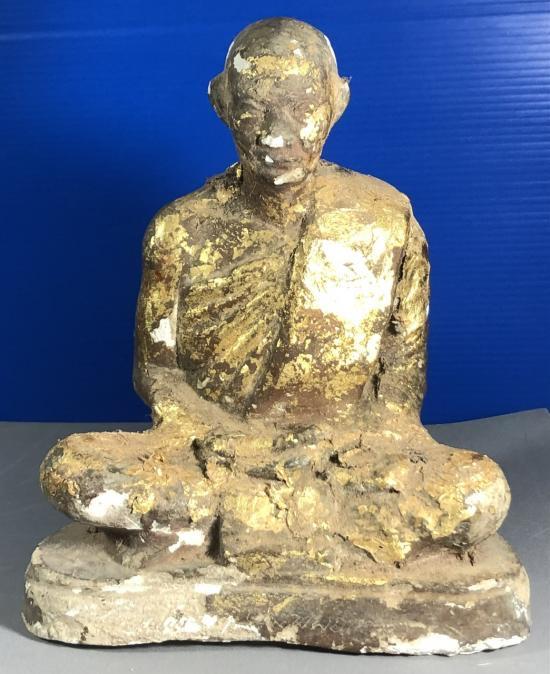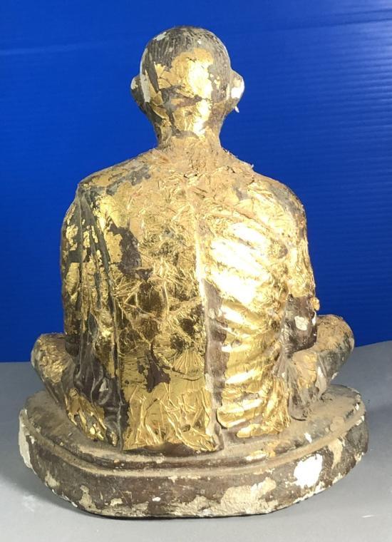 พระบูชาหลวงพ่อขอม วัดไผ่โรงวัว จ.สุพรรณบุรี รุ่นแรก เนื้อปูนผสมผงทาทองปิดทอง ขนาดหน้าตักพระ 5 นิ้ว