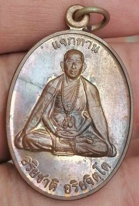 เหรียญครูบาอริยชาติ อริยจิตฺโต รุ่นแจกทาน เนื้อทองแดงผิวไฟ ที่ระลึกงานเข้านิโรธกรรมครั้งที่ 8 วัดแสงแก้วโพธิญาณ อ.แม่สรวย จ.เชียงราย ปี 2553 รับประกันพระแท้