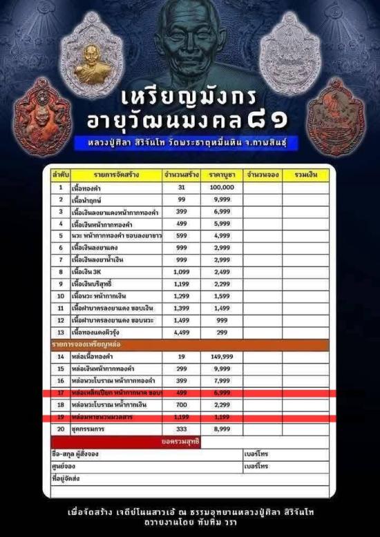วัดใจ เหรียญมังกร หลวงปู่มหาศิลา สิริจันโท(หลวงปู่ศิลา) อายุวัฒนะมงคล81 "เหรียญหล่อเนื้อนวะโลหะหน้ากากเงิน" ราคาจอง 2,299