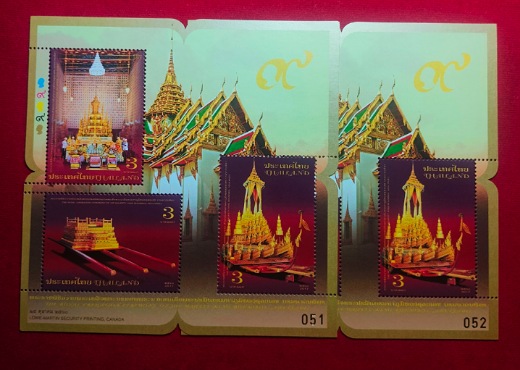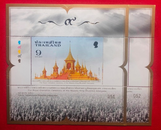 แสตมป์พระราชพิธีถวายพระเพลิงพระบรมศพ ร.9 สองชุด 6 แผ่น เลข 051-052 |