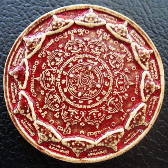ปฐมอรหันต์ สุวรรณภูมิ 2547 เนื้อกระเบื้องเคลือบสีแดงพิมพ์ธรรมจักร ขนาด 5 ซ.ม. สวยๆพร้อมกล่องเดิมๆ |