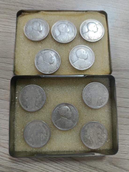 เหรียญเงิน ร.6 หน้าเหรียญ 1 สลึงช้างสามเศียรรวม 10 เหรียญเคาะเดียวแดง