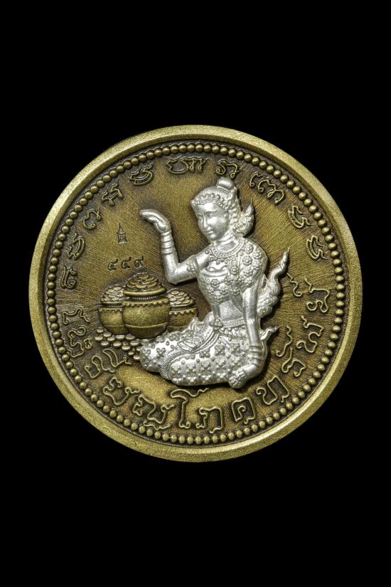 เหรียญแม่นางกวัก โภคทรัพย์ พระอาจาย์ต้อม วัดท่าสะแบง จ.ร้อยเอ็ด ปี2566 เนื้อบรอนซ์ทองซาติน หน้ากากองค์เงินไหทองคำ เลข๔๔๙ |