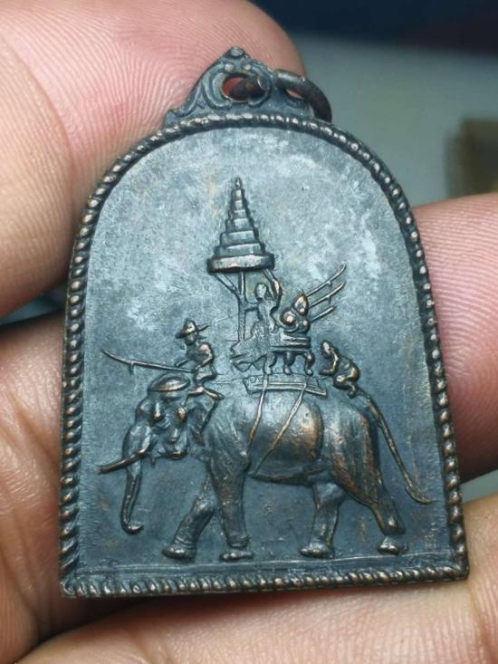 เหรียญสมเด็จพระนเรศวร หลังช้างศึก ปี 2514 เนื้อทองแดงรมดำสภาพตามรูปราคาเบาๆ |
