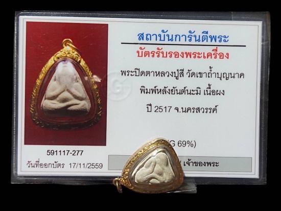 พระปิดตาหลวงปู่สี วัดเขาถ้ำบุญนาค พิมพ์หลังยันต์มิ เนื้อผง ปี2517 จ.นครสวรรค์ เลี่ยมทองพร้อมใช้ (G69%)พร้อมบัตรG-PRA |