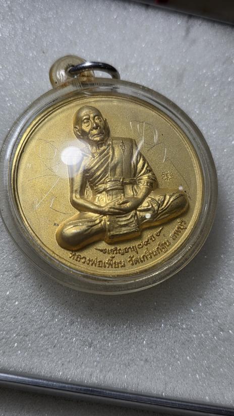 เหรียญหลวงพ่อเพี้ยนรุ่นบาตรน้ำมนต์ปี 48 เนื้อไมครอนทอง สวยเดิมเลี่ยมพร้อมใช้ มีจารหายากครับ |