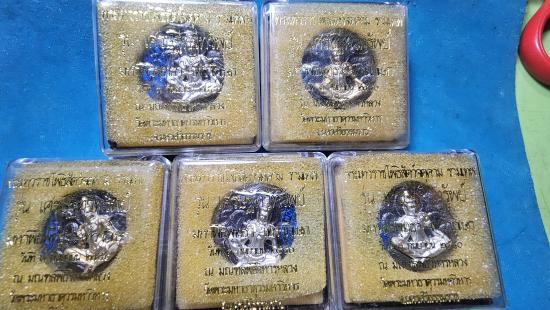 เหรียญรุ่นเศรษฐีทวีทรัพย์ ขนาด 3.5 เนื้อนวหน้ากากเงิน จำนวน 5 เหรียญ พร้อมกล่องเดิมครับ