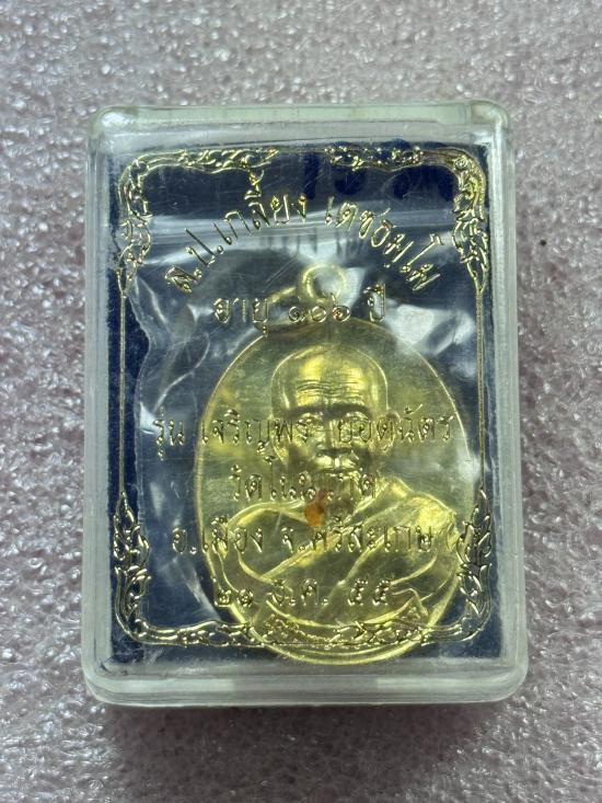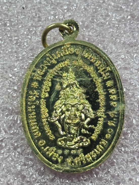 -เริ่ม 150 บาท -เหรียญรูปไข่หลังเทวดาทรงช้างสามเศียร หลวงปู่เกลี้ยง วัดโนนแกด จ.ศรีสะเกษ รุ่นเจริญพรยอดฉัตร เนื้อทองฝาบาตร หมายเลข 1574 ออกปี 55พร้อมกล่อง