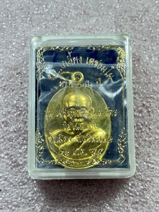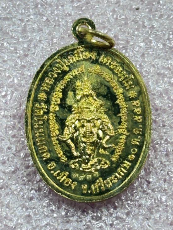 -เริ่ม 150 บาท -เหรียญรูปไข่หลังเทวดาทรงช้างสามเศียร หลวงปู่เกลี้ยง วัดโนนแกด จ.ศรีสะเกษ รุ่นเจริญพรยอดฉัตร เนื้อทองฝาบาตร หมายเลข 1933 ออกปี 55พร้อมกล่อง