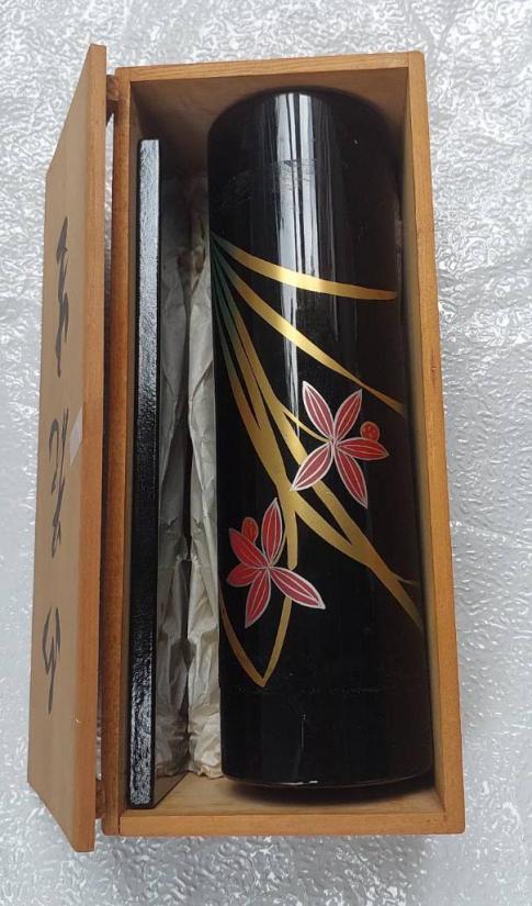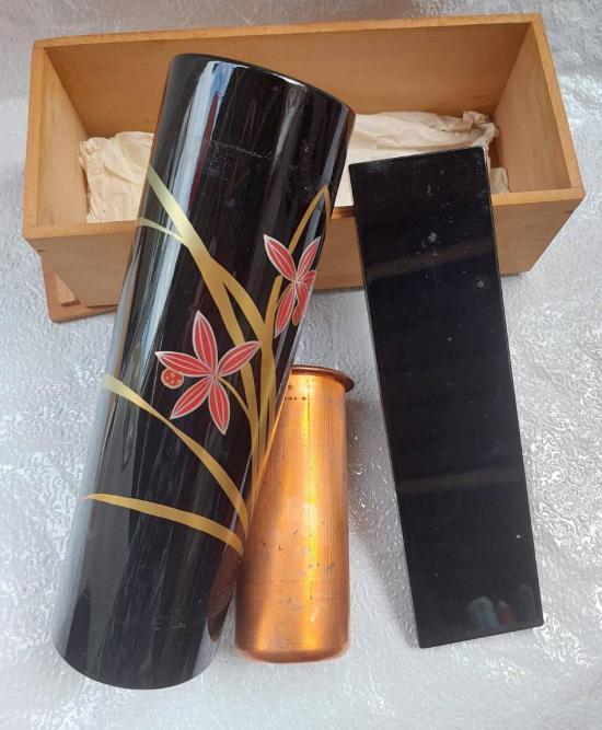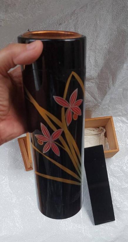 แจกันดอกไม้เครื่องเขินวาจิมะ (Wajima-nuri) จากญี่ปุ่น ซึ่งเป็นงานฝีมือดั้งเดิม (ของใหม่เก่าเก็บ) พร้อมกล่องไม้เดิมๆ มีไส้ทองแดงสำหรับใส่น้ำ