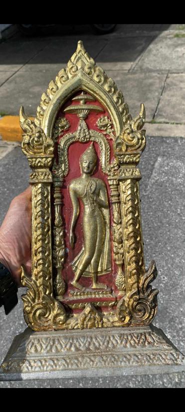 พระลีลากำแพงศอก ของหลวงพ่อขอมวัดไผ่โรงวัวเป็นพระกำแพงศอกที่มีประวัติการสร้างชัดเจน โบราณเชื่อว่าถ้ามีไว้บูชาในบ้านในเรือนจะกันฟืนกันไฟกันฟ้าได้ชะงัดนักแล องค์นี้เป็นพระลีลากำแพงศอกของหลวงพ่อขอม วัดไผ่โรงวัวหรือชื่อวัดโพธาราม เนื้อปีกเครื่องบิน นี้เป็นอีกหนึ่งพิมพ์นิยมเล่นหาเป็นมาตรฐานมานานแล้วครับที่เรียกว่าพิมพ์หลังพอจุด เป็นพระเนื้อปีกเครื่องบิน ที่ดูง่ายมากมาพร้อมซุ้มพร้อมตั้งบูชา ถ้ายังไม่เคยมีไว้บูชาแนะนำครับว่าเป็นพระที่บูชาแล้วดี จะเจริญก้าวหน้าดั่งพิมพ์พระครับ |