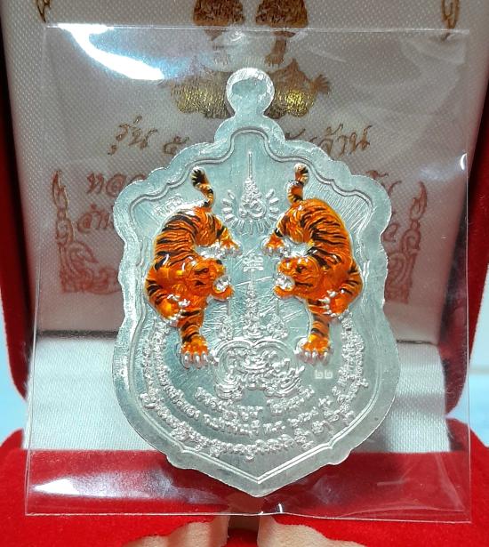 เหรียญเสมาหันข้าง รุ่น 5 พยัคฆ์พันล้าน หลวงปู่บุญมา "เนื้อเงิน ลงยาธงชาติ" เลขสวย 22 จำนวนการสร้าง 39 องค์ (หนัก 24.74 กรัม) |
