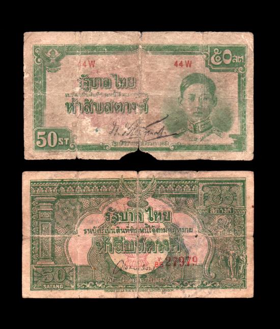 วัดใจ เคาะเดียว 2 ฉบับ ธนบัตรชนิดราคา 50 สตางค์ 2 รุ่น ประกอบด้วยรุ่นลายไทย และรุ่น แบบที่ 5 ผลิตที่ญี่ปุ่น สมัย ร.8 ปี 2488 หายากทั้งสองรุ่น |