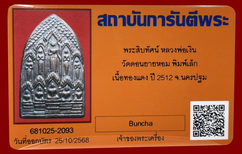 วัดใจ...เหรียญพระสิบทัศน์ หลวงพ่อเงิน วัดดอนยายหอม ปี2512 พิมพ์เล็ก เนื้อทองแดง นิยม หลังสายฝน สวยคม เส้นเสี้ยนคมชัด พร้อมบัตรรับรองครับ.