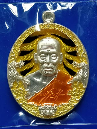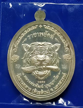 เหรียญหลวงพ่อพัฒน์ วัดห้วยด้วน "รุ่นราชาพยัคฆ์ปี" 2563 เนื้อเงินลายเสือ ลงยาเหลือง-ดำ ลงยาจีวร เลขสวย