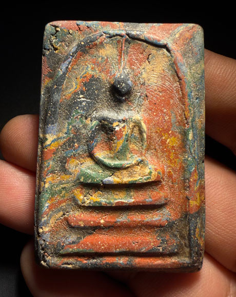 วัดใจ เคาะเดียวพระสมเด็จสีเบญจรงค์เก่าไม่ทราบที่ ขนาด5.5x3.8 Cm