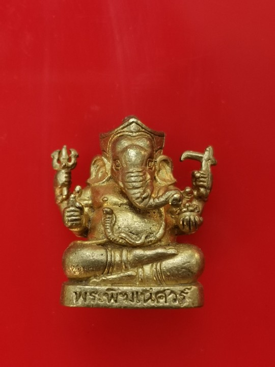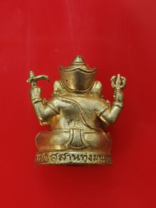 พระพิฆเนศ เนื้อทองลำอู่ ใต้ฐานอุดมวลสารและเม็ดพลอย หลวงปู่หงษ์ สุสานทุ่งมน จ.สุรินทร์ ปี 2554