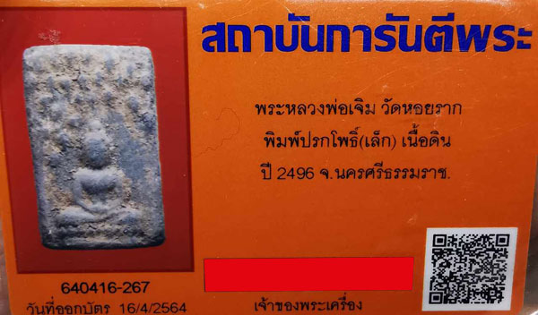 พระพุทธ หลวงพ่อเจิม วัดหอยราก พิมพ์ปรกโพธิ์เล็ก เนื้อดิน ปี2499 จ.นครศรีธรรมราช + บัตรG-pra สภาพเดิมค่ะ |