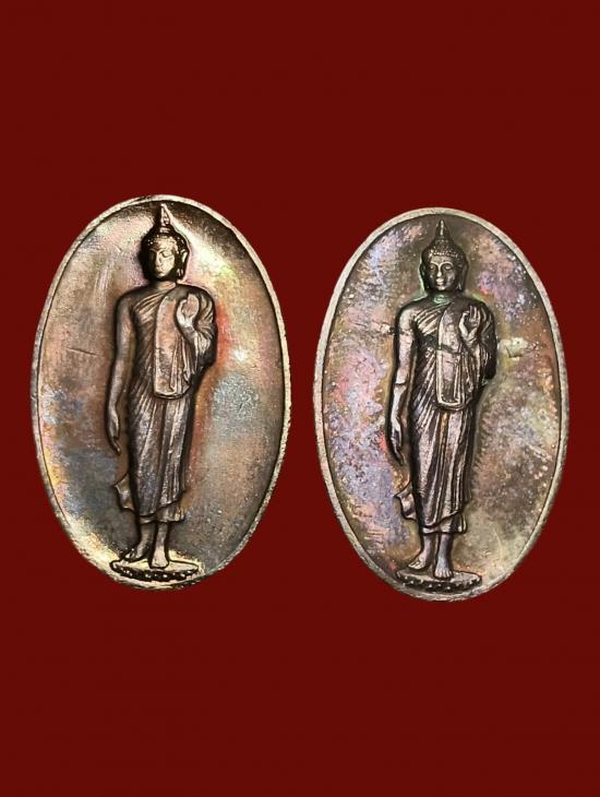 เหรียญพระลีลา พุทธมณฑล นครปฐม ปี 2537 หลัง ภปร. พระราชทานในงานอนุรักษ์ฯ มีกล่อง รวม 2 เหรียญ สวยครับ