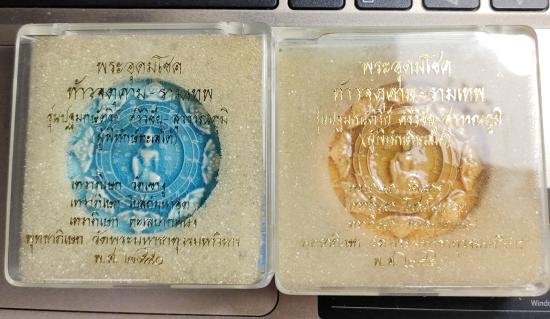 องค์พ่อจตุคามรามเทพ ลูกเคลือบสีฟ้า สีเหลือง รุ่นปฐมกษัตริย์ศรีวิชัยสุวรรณภูมิ ปี50 |