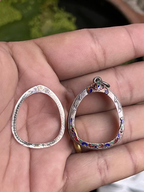 กรอบเงินใส่ปิดตาอย่างงงงงดีลงยาด้วยสวยมากแกะมือย่างดี