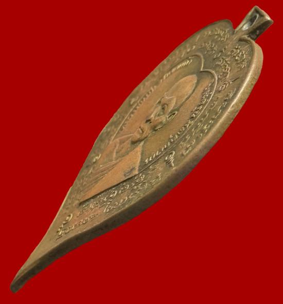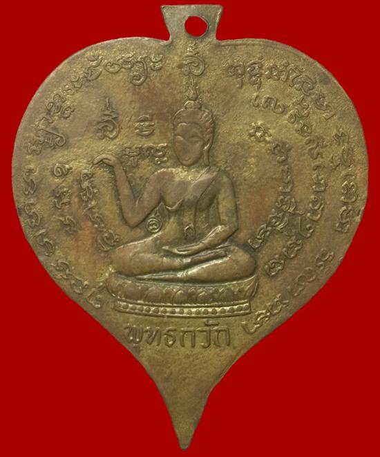 เคาะเดียวแดง เหรียญใบโพธิ์ หลวงพ่อกัน วัดเขาแก้ว หลังพระพุทธกวัก จ.นครสวรรค์ ปี 2508 เนื้อทองฝาบาตร