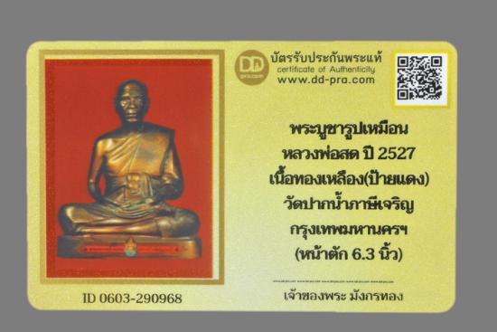 พระบูชารูปเหมือน หลวงพ่อสด ปี 2527 เนื้อทองเหลือง(ป้ายแดง)