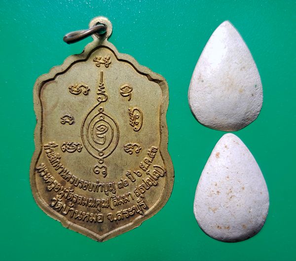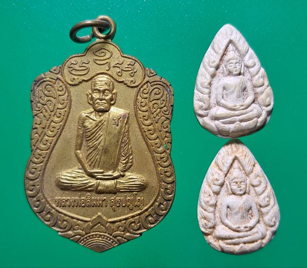 180.- @@ " เหรียญเสมา + พระพิมพ์หยดน้ำ เนื้อผงกระดูกผี 2 องค์ " หลวงปู่สิมมา วัดบ้านหมอ จังหวัดสระบุรี @@ |