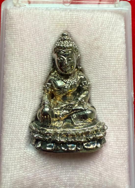 100...พระกริ่งสงกรานต์ เนื้อโลหะกะไหล่เงิน รุ่นแรกและรุ่นเดียวของวัดสุวรรณรังสรรค์ (วัดยายร้า) อ.บ้านฉาง จ.ระยอง ปี 2548 |