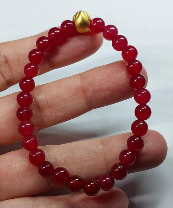 ***วัดใจ***สร้อยข้อมือ ทับทิม พร้อมจี้ลายเห้งเจีย เนื้อเงินชุบทอง เม็ด 6 มิล สวยๆ |