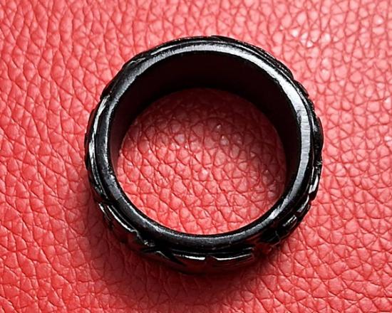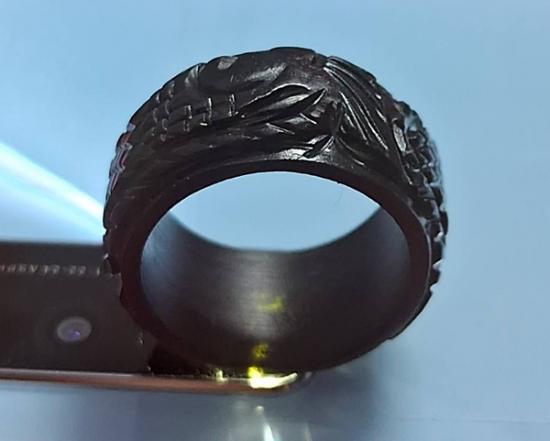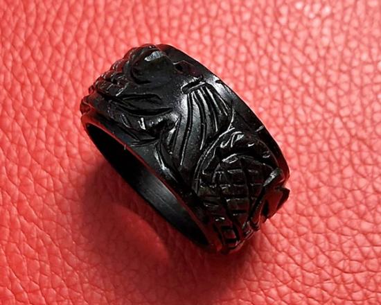 แหวนหยกดำแกะลายมังกร หยกพม่าแท้ 100 % (แสงส่องผ่าน) เส้นผ่าศูนย์กลาง 2.3 ซม. หนา 1.3 ซม. วงใหญ่ๆ หายากมาก ไม่ค่อยได้มาบ่อย ราคาค่อนข้างสูง (กท.71)