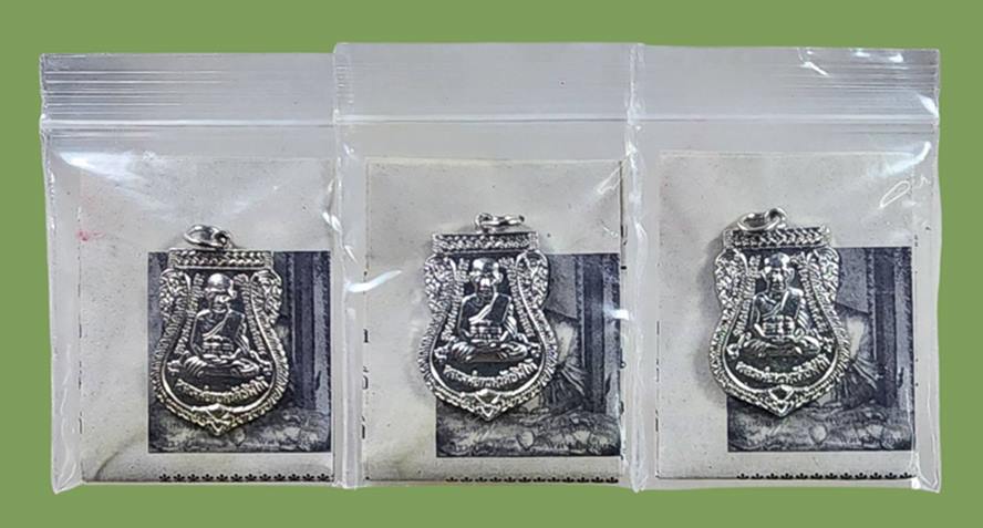( 3 องค์  +ใบคาถาเดิม) เหรียญเสมา หลวงปู่ทวด วัดช้างให้ เนื้อชุบนิเกิล ปี ุ66 สวยๆ ใบคาถาเดิมครับ |