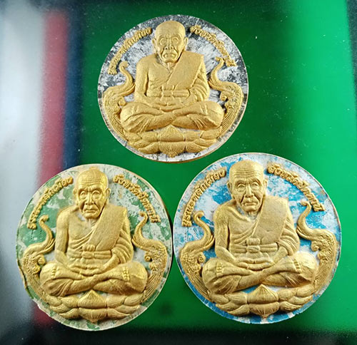 169......รุ่นหลัก...... หลวงปู่ทวด จตุคามรามเทพ วัดช้างไห้ รุ่นบูรณะหลักเมืองปัตตานี พ.ศ .2550 พิมพ์ใหญ่ 5.5 ซม...///ชุดกรรมการ ปิดทอง 3 องค์ สวยเดิมกล่องเดิม....ชุด ...8