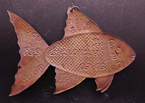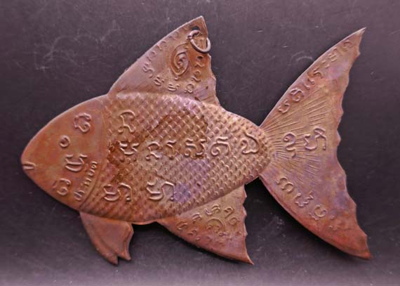 ชื่อพระเครื่อง !!!!วัดใจ 9 บาท!!!! ปลาตะเพียน (ประหยัด) แผ่นโลหะ มีห่วงแขวน ขนาด 4 นิ้ว ไม่ทราบที่ครับ...ป7
