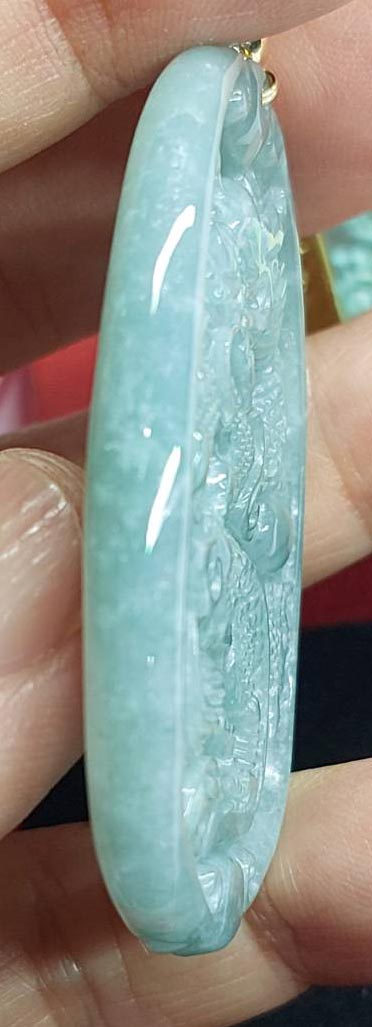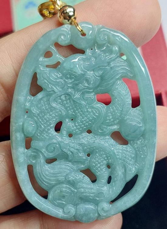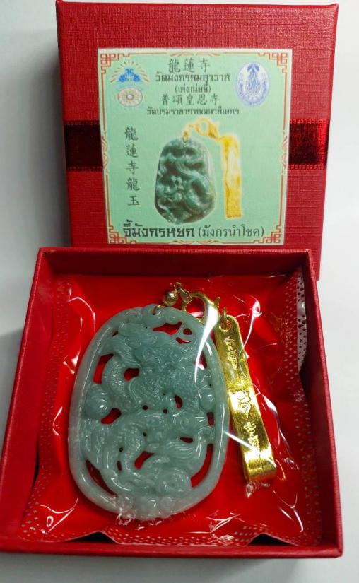 รายละเอียด จี้มังกรหยก (มังกรนำโชค) วัดมังกรกมลาวาส (เล่งเน่ยยี) เนื้อหยกสีโอเชี่ยนบลู สวยๆ