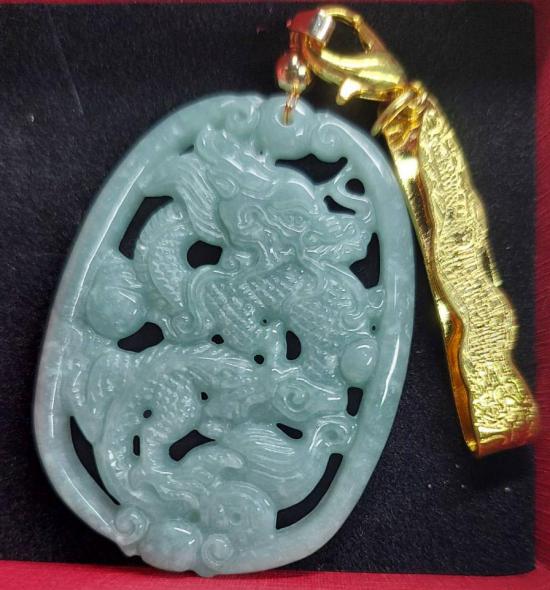 จี้มังกรหยก (มังกรนำโชค) วัดมังกรกมลาวาส (เล่งเน่ยยี) เนื้อหยกสีโอเชี่ยนบลู สวยๆ