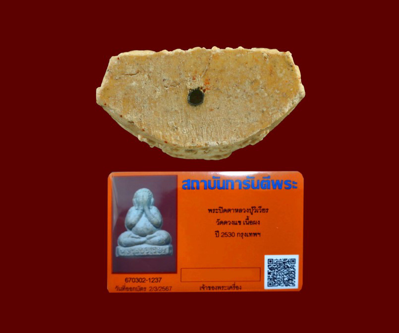 พระปิดตาตุ๊กตาพระพุทธเมตตาลอยองค์ หลังยันต์พุทธซ้อน "ฝังตะกรุด" ปี 2530 หลวงปู่วิเวียร วัดดวงแข สภาพสวย ผิวเดิมๆ มาพร้อมบัตรรับรอง