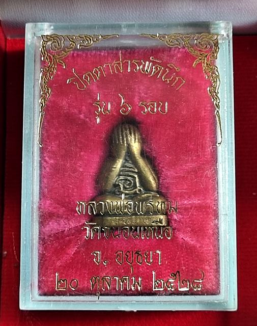 พระปิดตาสารพัดนึก หลวงพ่อพรหม เนื้อทองเหลือง ปี2528 วัดขนอนเหนือ จ.อยุธยา พร้อมกล่องเดิม