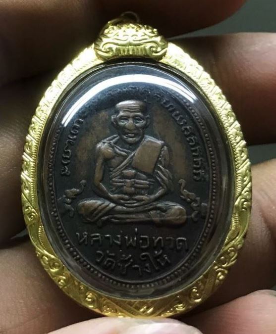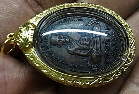 เหรียญหลวงปู่ทวด วัดช้างให้ รุ่น 4 เนื้อทองแดง ปี 2505 จ.ปัตตานี เลี่ยมทอง+บัตรรับรอง เคาะเดียว