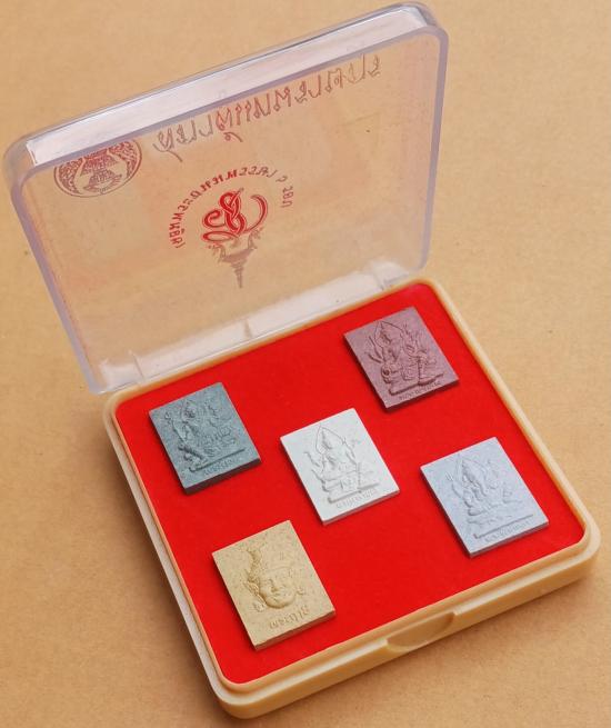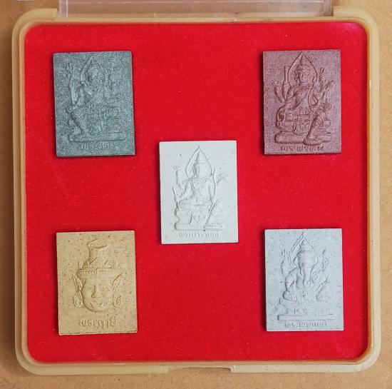 พระชุด 5 เทพ สก. 7 สี จัดสร้างครั้งยิ่งใหญ่โดยสภาผู้แทนราษฎร พิธีเดียวกับกริ่งจักรตรี และพระนางพญา 7 สี สก. องค์พระชุดเทพมงคลกว้าง 1.9 ซม. สูง 2.5 ซม. หนึ่งชุด ประกอบด้วย 5 องค์ 5 สี คือ 1.พระพรหม