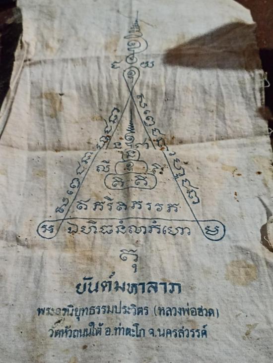 ผ้ายันต์มหาลาภ หลวงพ่อฮวด วัดหัวถนนใต้ นครสวรรค์ ปี 2518 เก่าเดิมบ้านๆหายากครับ |