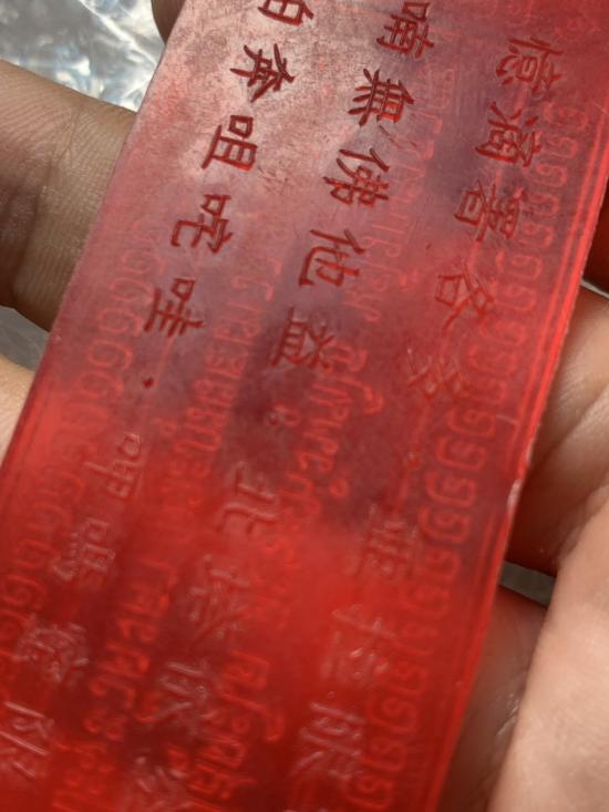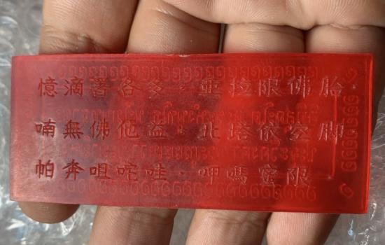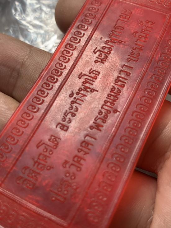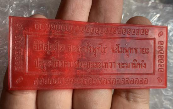 แผ่นยันต์พลาสติกแดง หลังหนังสือจีน หลวงพ่อโอภาสี อาศรมบางมด