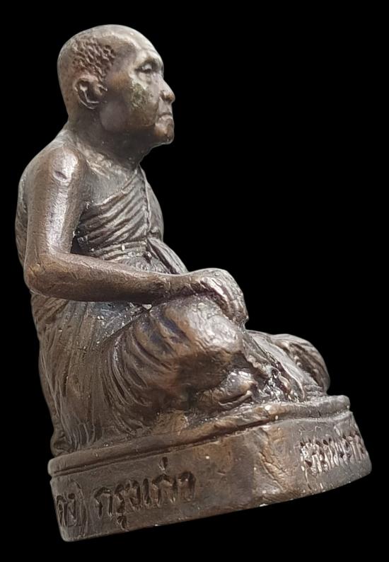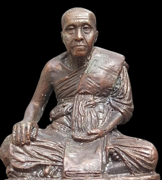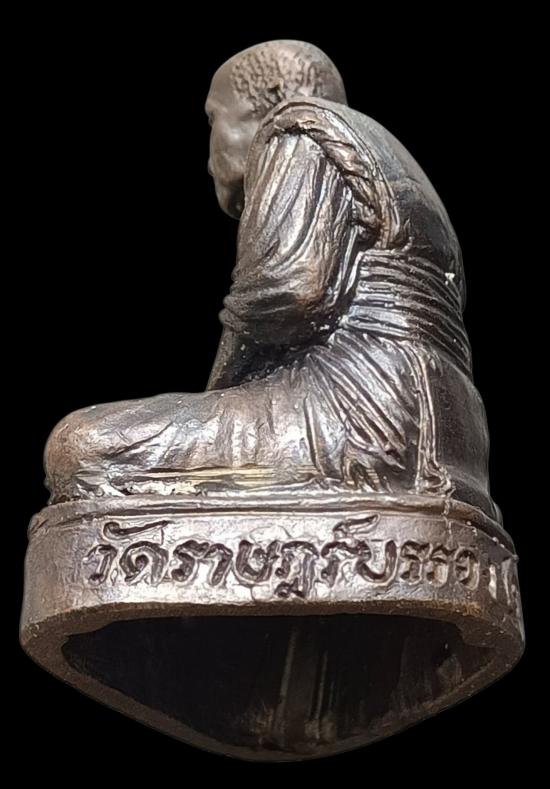 พระบูชาหน้ารถหลวงพ่อกลั่น วัดพระญาติการาม ออกวัดราษฎร์บรรจง (วัดตาดง) กรุงเก่า ขนาดหน้าตัก 1.5 นิ้ว เนื้อรมดำ ปี2559