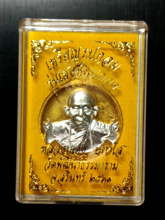 เหรียญกลมเนื้อ2K รุ่นเฮงหนุนนดวง ปี2561 หลวงปู่เฮง ปภาโส วัดพัฒนาธรรมมาราม จ.สุรินทร์ หมายเลข ๔๑ สร้าง ๑๙๙ เหรียญ